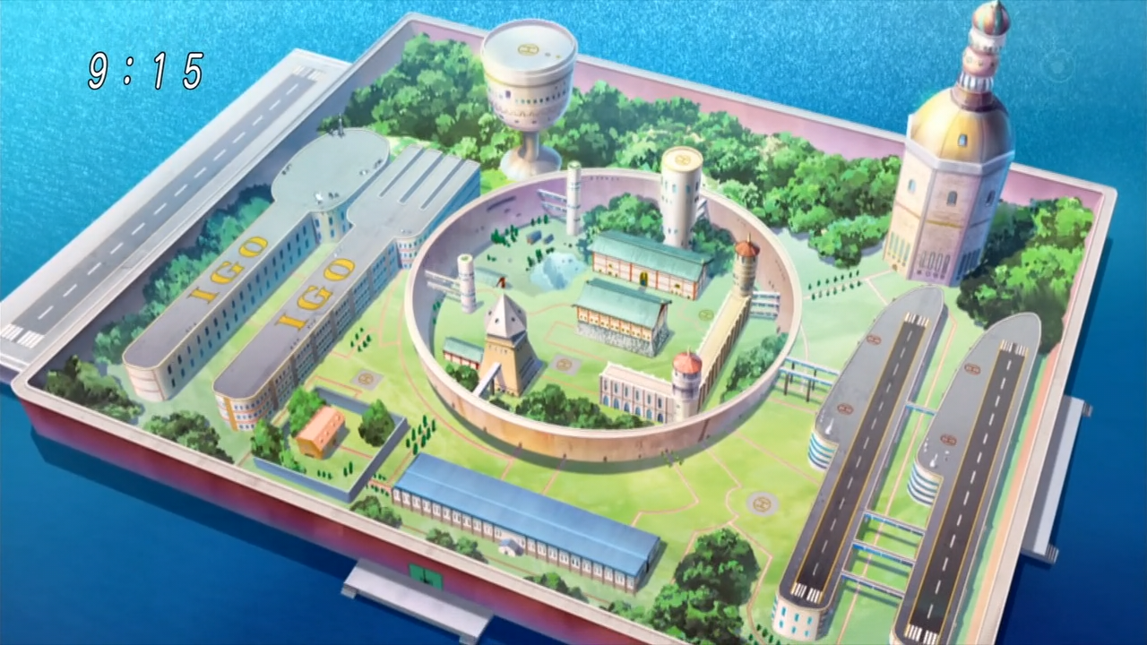 海上に浮かぶ食事のお盆の形をしたIGO本部。