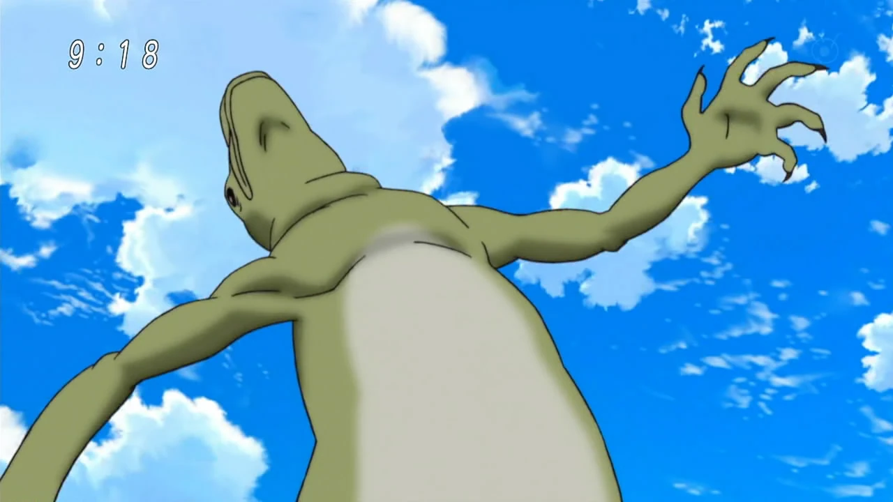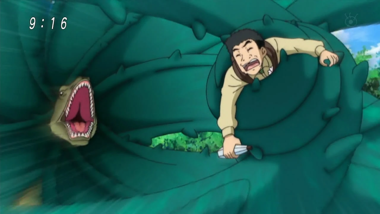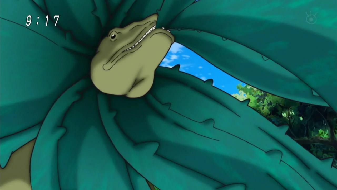 The Aloe Frill-neck Lizard can extend and control the leaves surrounding its neck like tentacles and use them to capture and ensnare prey, making their versatile movements excellent for hunting and combat. It can move at a rather fast pace on its hind legs, but seems to only be a little bit faster than the average human. This creature has a poor tolerance for spicy foods (such as Mentaikomugi) and inhaling them will cause its leaves to shoot out in all directions and its body to spasm uncontrollably.