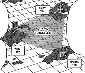 Area 6 is located just south of the Human World, with Area 5 to its west and Area 7 to its east. It has the third smallest amount of singular landmass of all the eight areas, beating only Area 1 and Area 3 in land mass. Like Area 2, Area 6 is not actually a continent but a whole region of ocean that has three smaller continents in its territory, with one continent on its south, one on its east and one on its west.