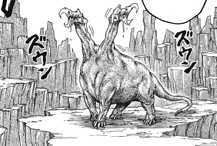 The Bicephalosaurus (フタクビサウルス Futakubisaurusu) is a giant two-headed sauropod-like beast that resides near the gravity intense region of Heavy Hole.