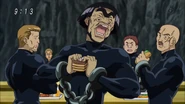 After descending the elevator, they arrived at the reception area, where A-Rank Execution beasts roam. Toriko was excited to meet the supposedly ferocious warden who tamed all those A-Ranks. At the reception desk sat Chupali, who reported to Ohban that Zebra’s injured 20 prisoners, and that the warden is in a bad mood due to Zebra’s discharge. They stumbled upon a door with “Menu IV” on top, which Ohban mentioned is one of the Punishment Menus for prisoners, with each Course prepared in correspondence to the crime committed. Toriko and Komatsu see familiar criminal faces. The punishment descends with the Course floors, starting from the Hors-D’oeuvres floor, where they take your favorite food--> Soup, where soup is poisoned--> Fish, where you only get to drink--> Meat, where even drink isn’t allowed--> until finally reaching the floor where they themselves get cooked, and then thrown outside to the wild beasts, hence the name Stolen Food Full Course.