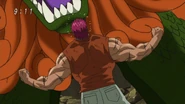 At that time, Toriko knew Komatsu was the one who led them to the Cola due to his talent for being liked by ingredients, and tells Zebra to trust in him. Komatsu asked them to follow his cooking instructions. At 73% and 66% of Toriko’s and Zebra’s calories left, respectively, they jump into the fight, with Komatsu as their instructor.