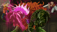 Zebra’s warning came late, and Komatsu had already encountered the Salamnder Sphinx. Zebra sent a Hoedama their way, but the beast brushed it off. To take a shortcut, Zebra blasted the ground underneath with his Sound Bazooka, making way down to Komatsu. The sound Armor around Komatsu was gone, which shocked Zebra, who thought it was the sphinx’s doing. Zebra demanded a serious fight to death with the beast, with its blood as repairs for drowning out his Hoedama. Sensing Zebra’s seriousness, Toriko asked Komatsu to hurry out of the place. Zebra unleashed a barrage of attacks on the beast (Voice Missile, Voice Cutter, Thunder Noise) and was surprised the beast was still standing its ground; the beast swung its tongue at Zebra, who’s Sound Wall was of no use, leading Toriko to interfere. Recalling what Melk the First told him, and using his smell, Toriko confirmed it: the Cola’s inside the Pyramid’s master, the lvl 92 Salamander Sphinx’s body.