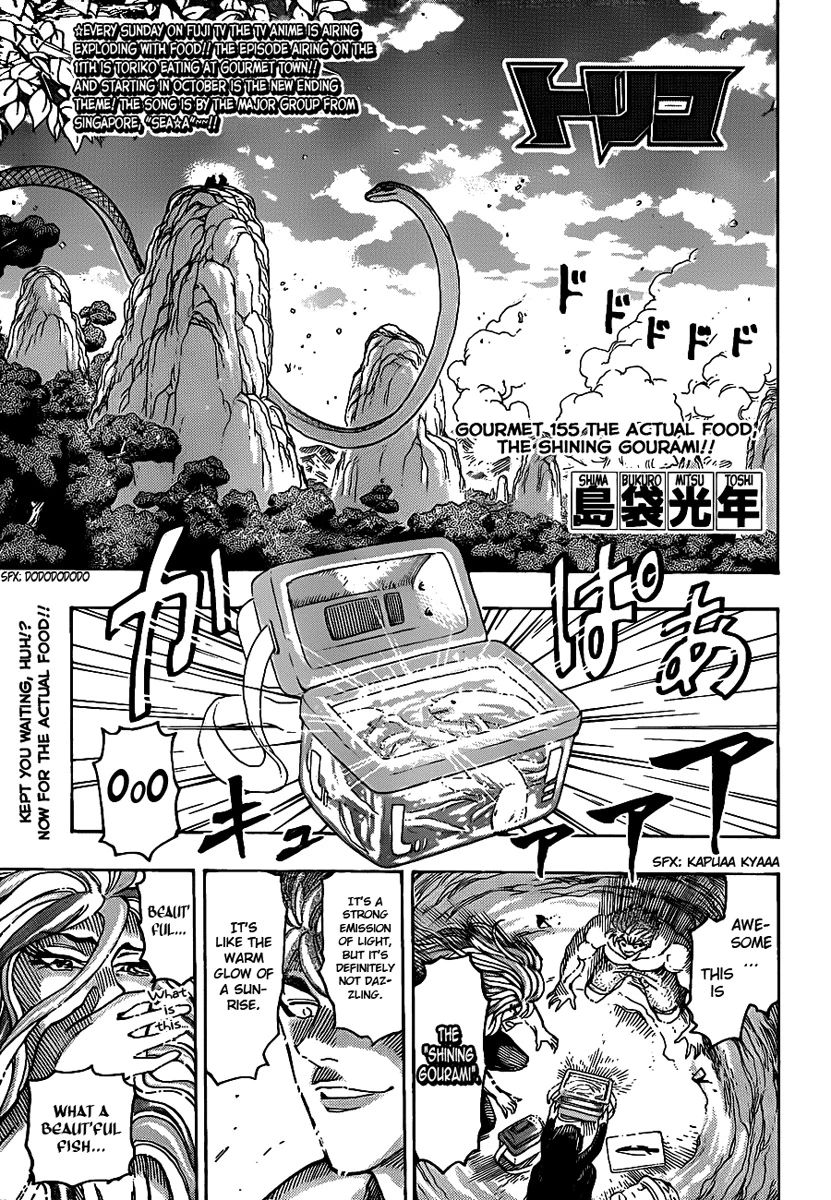 A Taste of Shining Gourami!! is the 155th chapter of the Toriko manga.