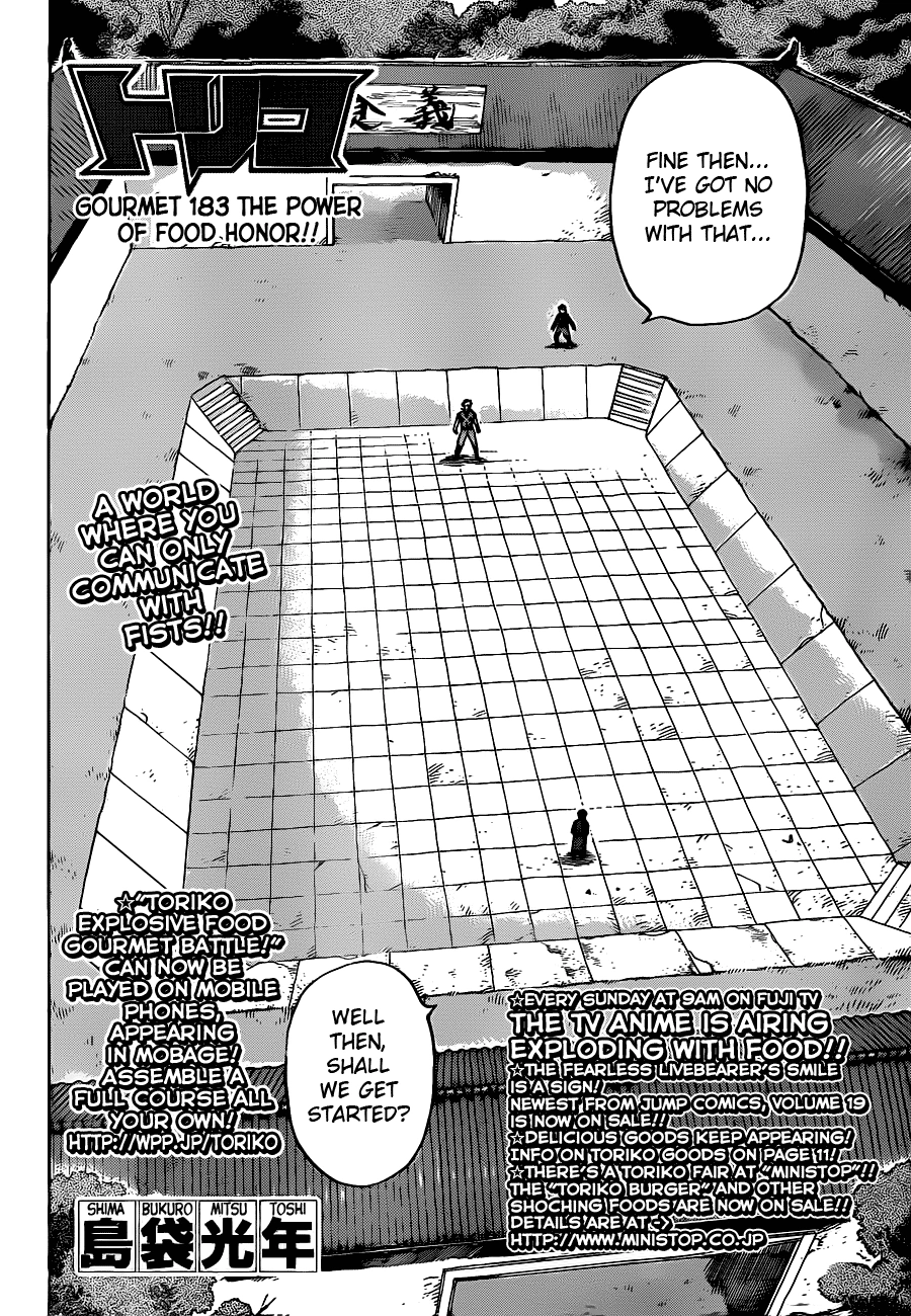The Power of Honoring the Food!! is the 183rd chapter of the Toriko manga.