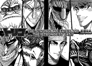 The four beasts are met with opposition by each of the Four Heavenly kings, fighting ensues between Toriko and Gaoh when the beast kings pride is challenged.