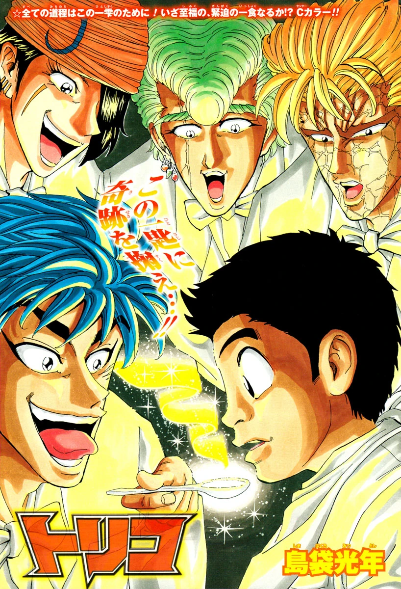 Teppei manages to squeeze one drop of the Century Soup from the gourmet show window. The chapter ends with as the soup dictates Komatsu as the one who receives it.