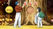 The 100 Face Slot (100面スロット 100-Men Surotto) is a gigantic slot machine with 100 faces vertically and 100 faces horizontally with 40 types of pictures in all. It rotates at 100-150 meters per second; as you get further, the rotation speeds up and the multipliers decrease. Because of Coco’s vision, he can hit all the highest value faces.