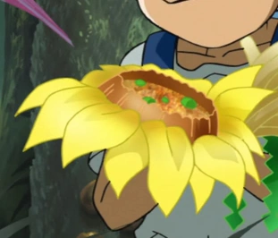 A Gratin Flower is a breed of sunflower with an edible anther made out of delicious gratin. During the events of the Toriko 3D Movie, Peck picked one that was growing alongside some Macaroni Grass during his and Toriko's venture through Teran Plains.