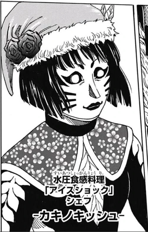Kakino Kish (カキノキッシュ Kakinokisshu) is one of the Five 10-Shell Cooks of Blue Grill and chef of Ice Shock.