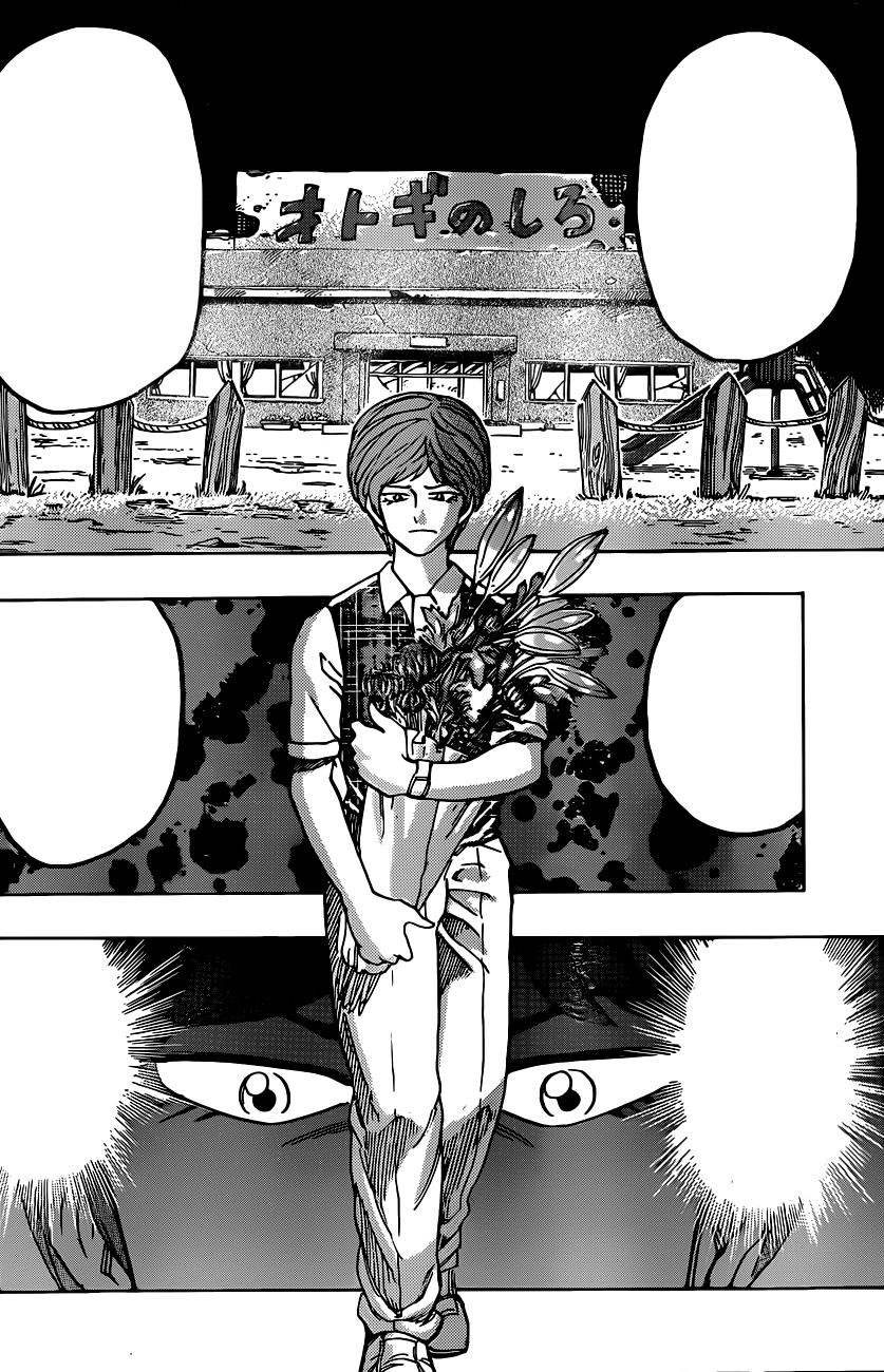 Not long afterward, Otake is kidnapped by the Gourmet Corp.. He is next seen injured and held prisoner in the Gourmet World, and notices Ichiryu's presence in the base.