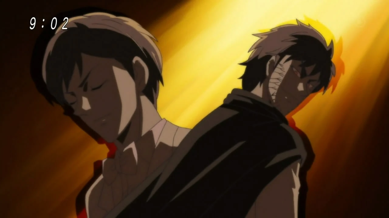 A changed Otake with Chiyo and a Scum Beast.