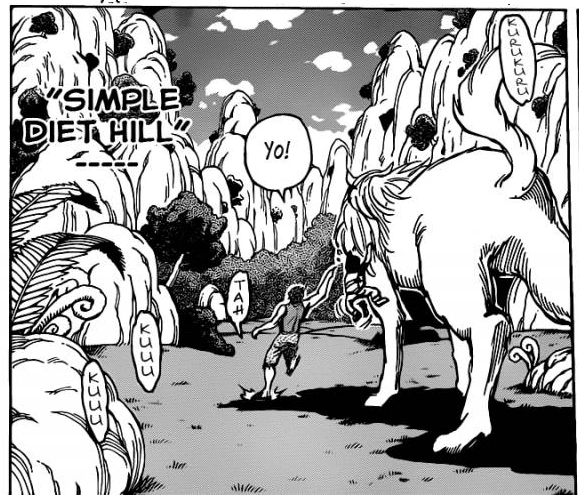 Simple Diet Hill (粗食の丘 Soshoku no Oka) is a small valley within Eco Land surrounded by cliffs and numerous jagged rocks on all sides. It is the main base of the Gourmet Knights.