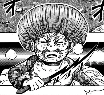 Setsuno is forced to use this knife during the battle at Cooking Stadium when Joie arrives and uses one of Cinderella's most powerful techniques, the "Oku Mai Oroshi" against her. Setsuno is able to deflect it with her Takitsuba albeit still suffering numerous cuts.
