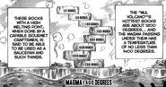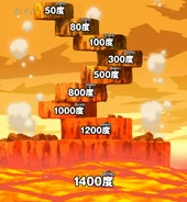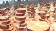 The only creatures capable of surviving in this region are the Magma Rats. The magma beneath the land has a temperature of 1400 degrees and the land itself is roughly 1300 degrees and might cook anyone alive if stood on for too long, so it is safer to stand on the large circular rocks which decorate the land. All the rocks are oddly stacked atop other rocks and the higher the rock stands the less hot it is, but even so all the rocks have a high melting point and will eventually cook anything that stays on them for too long, although at a slower pace than the ground. Gourmet Craftsmen use these rocks as saucepans or other such things. The volcano's ash also contains edible salt that's just the right amount for spicing up the Blue Blood Corn.