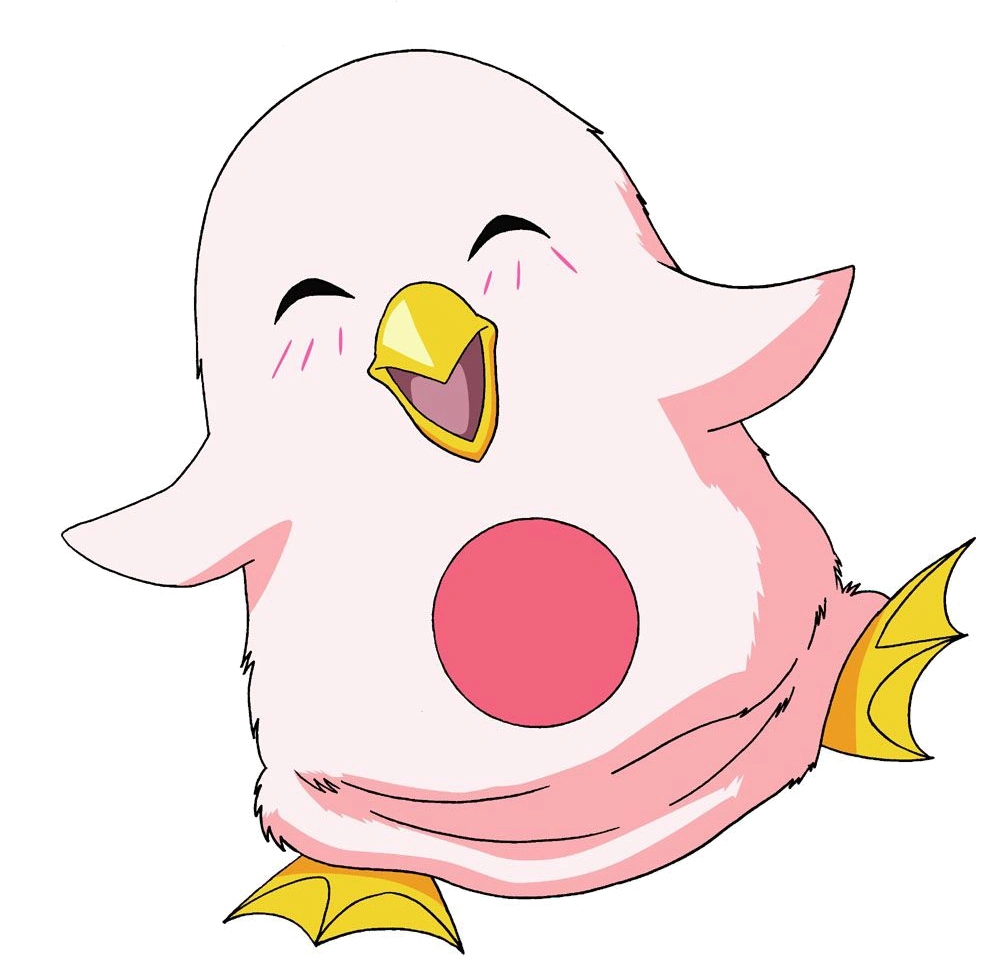 Yun is a small baby Wall Penguin whose height barely reaches Komatsu's waist. It has bright pink and fluffy feathers with a dark pink spot in the middle of its belly and small beady black eyes. When fishing at Pot Pond, it wears a small saddlebag around its body which it uses to keep Savorth Worms for fishing and snacking on. Later during the Cooking Festival, it is shown that he has grown to be about Komatsu's size and is even able to carry him on his back. After the time skip, Yun's dark spot is bigger and shaped like a rounded refrigerator door.