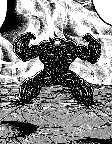 Zebra's Gourmet Cells are host to an ancient Appetite Demon known as the Voice Demon (ボイスデーモン Boisudēmon), which devastated planets with its voice and arm strength.[2] It is a humanoid bat-like creature with black, heavily scarred skin. Its small, dome-like head sits on top of a heavily muscled body, and is dominated by a wide, toothy maw.