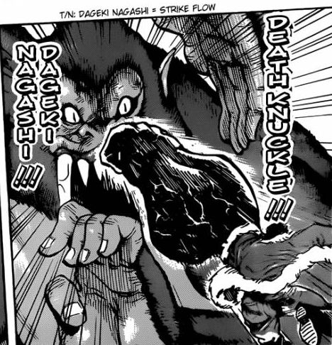 Death Knuckle (デスナックル Desu Nakkuru): Zebra throws a deadly punch with his enlarged Appetite Demon arm at his opponent.[45]